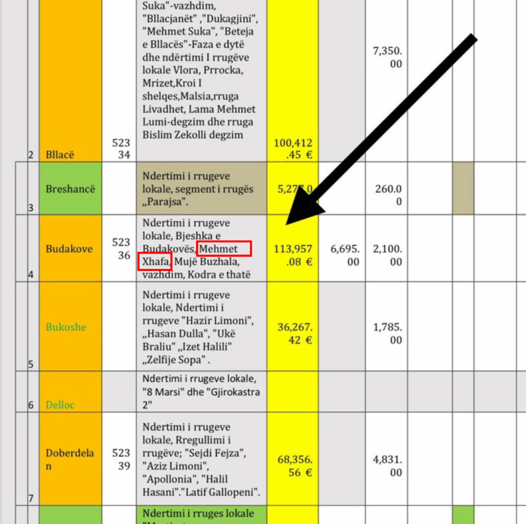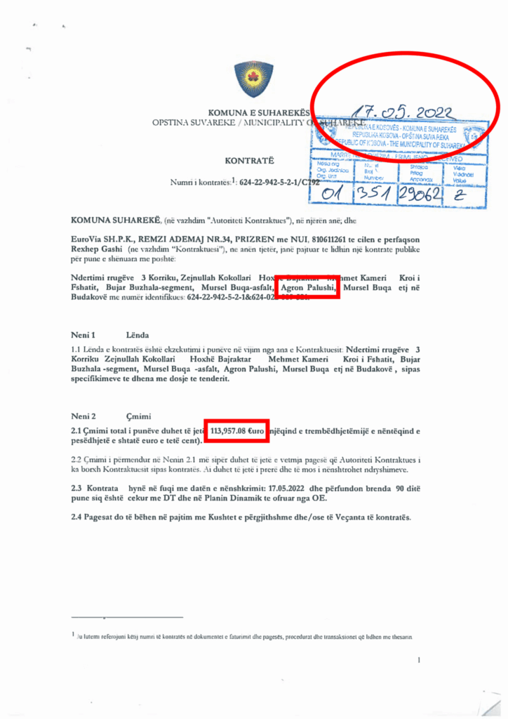 Sipas të dhënave publike, në maj të vitit 2022 është lidhur një kontratë për “Ndërtimin e rrugëve lokale në Budakovë”, me operatorin ekonomik fitues, në vlerë prej 113,957.08 euro.
