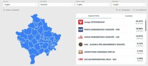 Në bazë të këtyre rezultateve, VV-ja prin me 43.99 për qind, pastaj është PDK-ja me 18.85, LDK-ja me 15.11 dhe AAK-ja me 8.74 për qind.