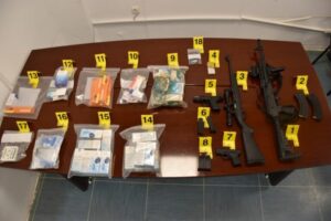 Gjithashtu është ushtruar edhe kontroll në pronat e të dyshuarit, ku sipas policisë, janë gjetur armë zjarri me leje përkatëse, medikamente të ndryshme, pajisje elektronike, municion etj.
