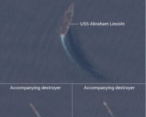 “Ka të ngjarë që ato të jenë pjesë e grupit të sulmit të aeroplanmbajtëseve Lincoln, por nuk mund të identifikojmë saktësisht se cilat anije janë të dukshme.” – raporton BBC.