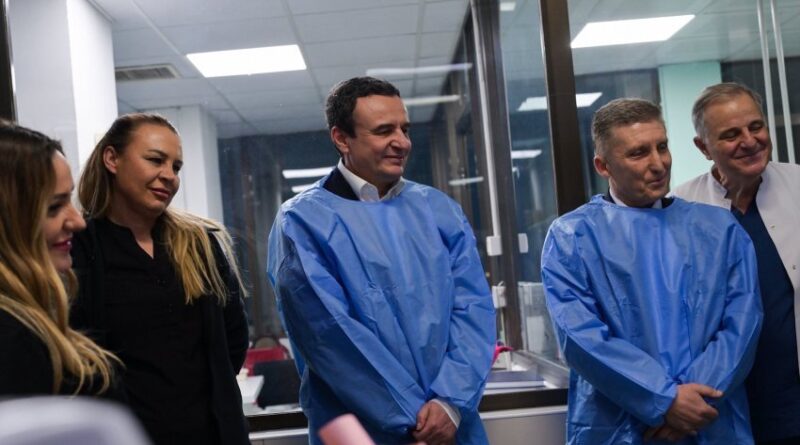 Kurti, i shoqëruar nga ministri në detyrë i Shëndetësisë, Arben Vitia, dhe drejtori i SHSKUK-së, u prit nga stafi mjekësor, përfshirë doktor Zef Ndrejaj dhe doktor Naser Rafuna.